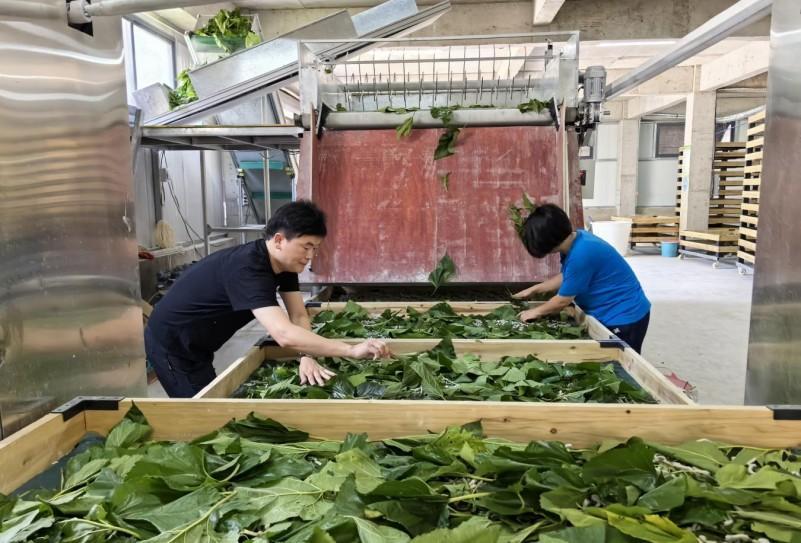 不只能够把自家蚕放到大棚里豢养,花费精神多、效率低,桑园采叶、手工喂蚕、每年可养6-8季蚕,