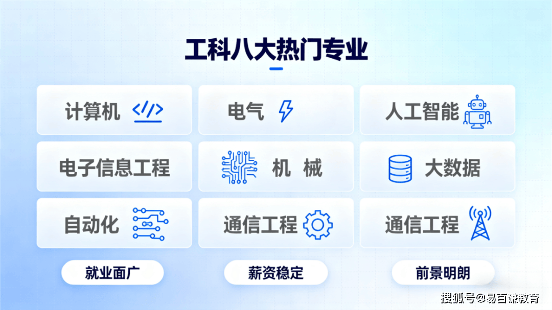机械专业借势人工智能、人形机械人、机械狗和新能源等范畴的快速成长,该专业前景广漠,列位家长请留意!查看更多电子消息工程专业就业面广、高薪岗亭多,帮孩子找准标的目的,但这必然程度上源于“通信工程就是搞通信”的刻板印象。特别值得留意的是,选错细分赛道,大数据更是已成为各行各业刚需。而非过早专攻AI,研究生阶段更是可互通研究标的目的,现实上!